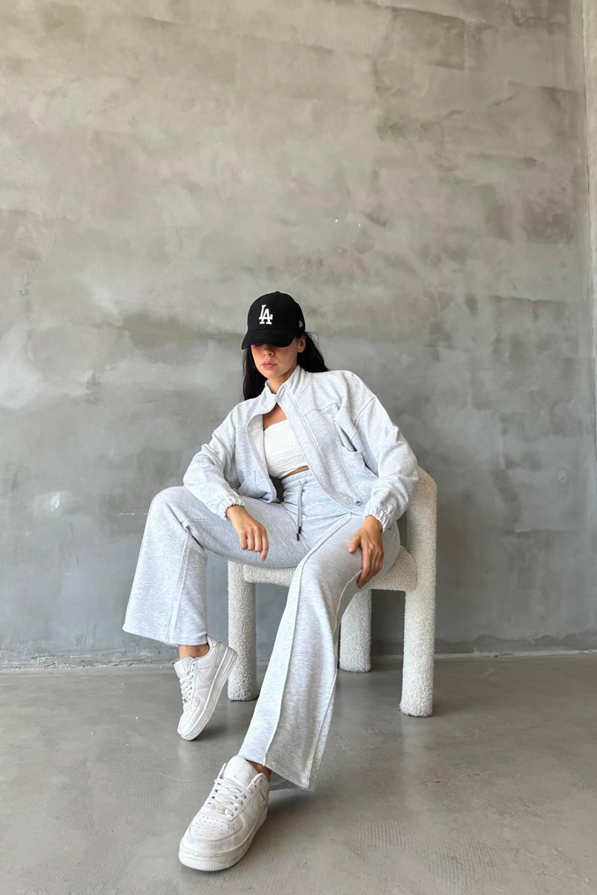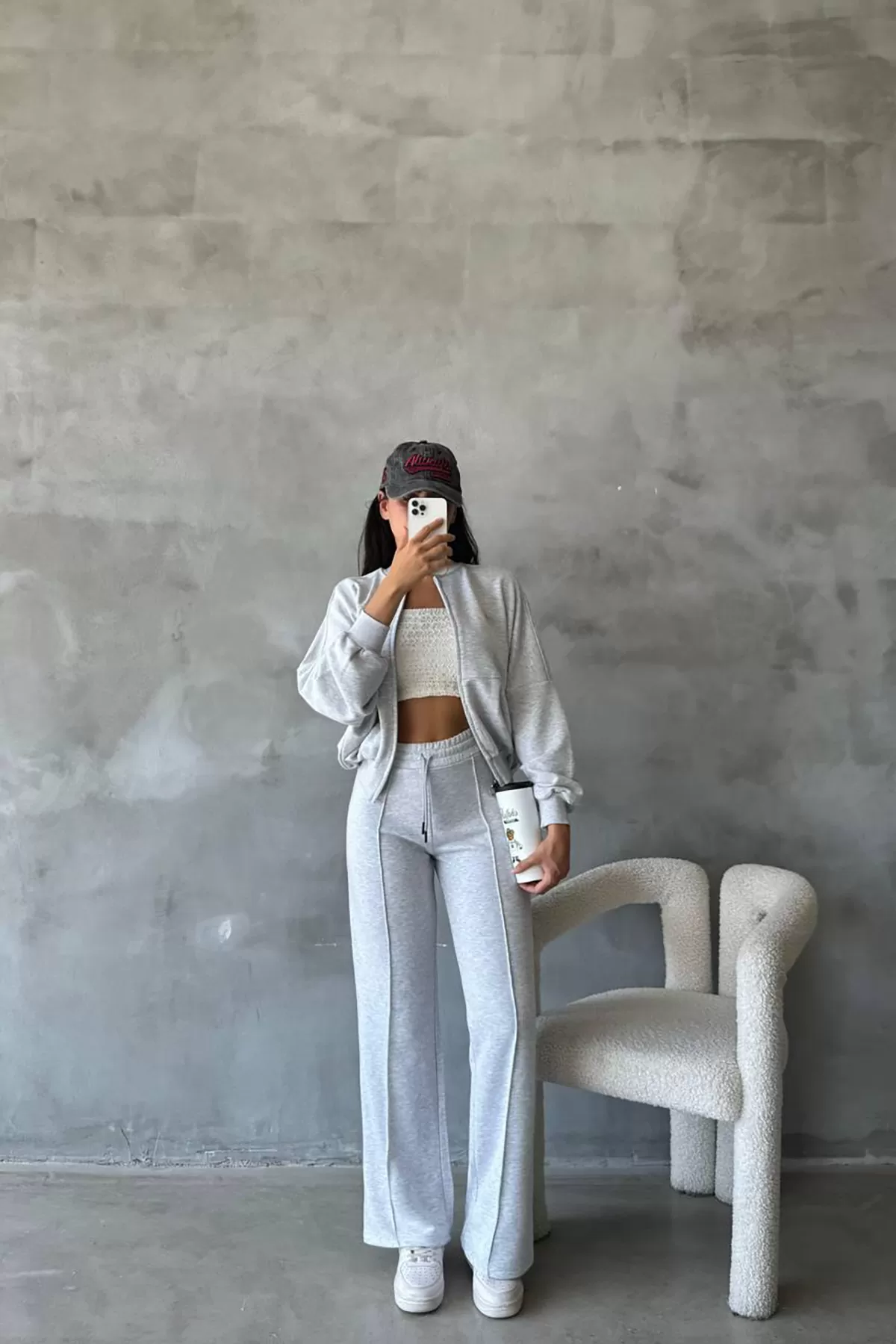 Pamuklu Melanjlı Gri Kadın Eşofman Takımı Pamuklu Melanjlı Gri Kadın Eşofman Takımı