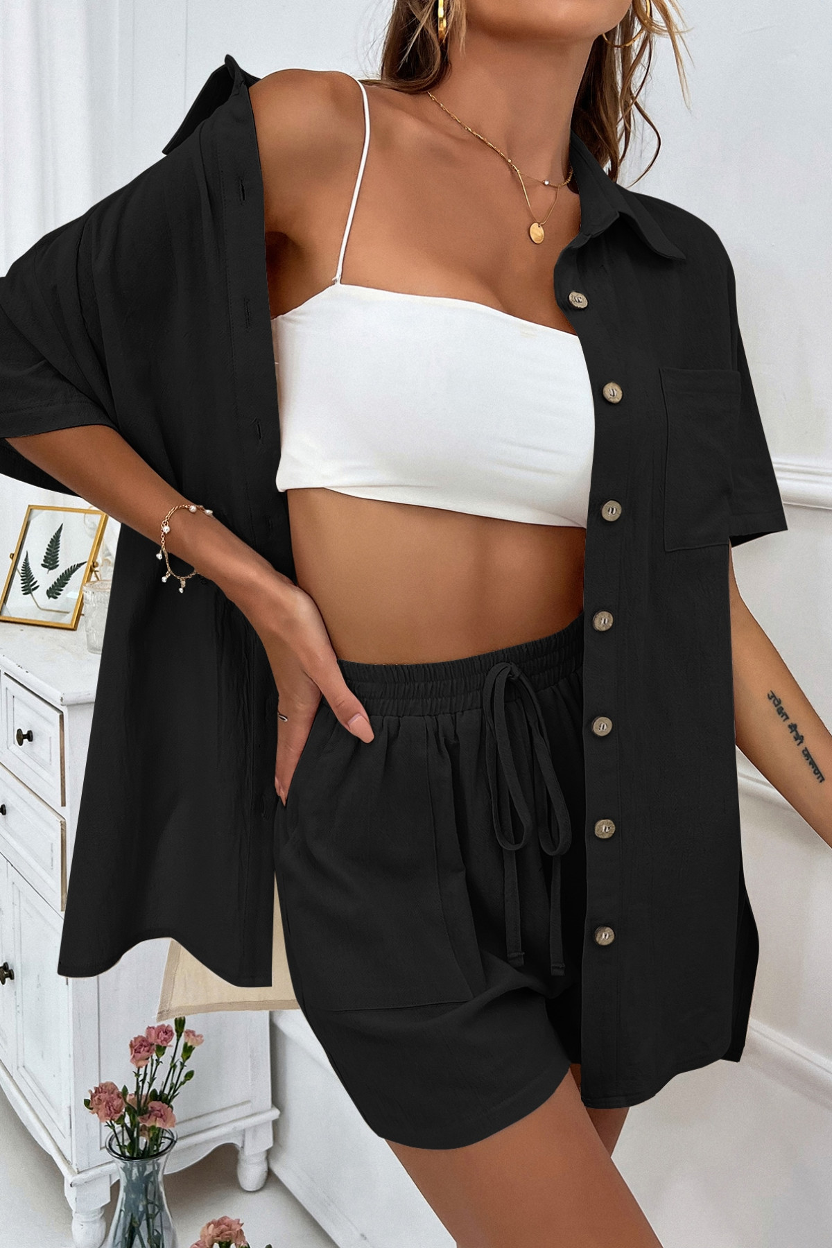 Pamuklu Siyah Gömlek Şort Kadın İkili Takım
