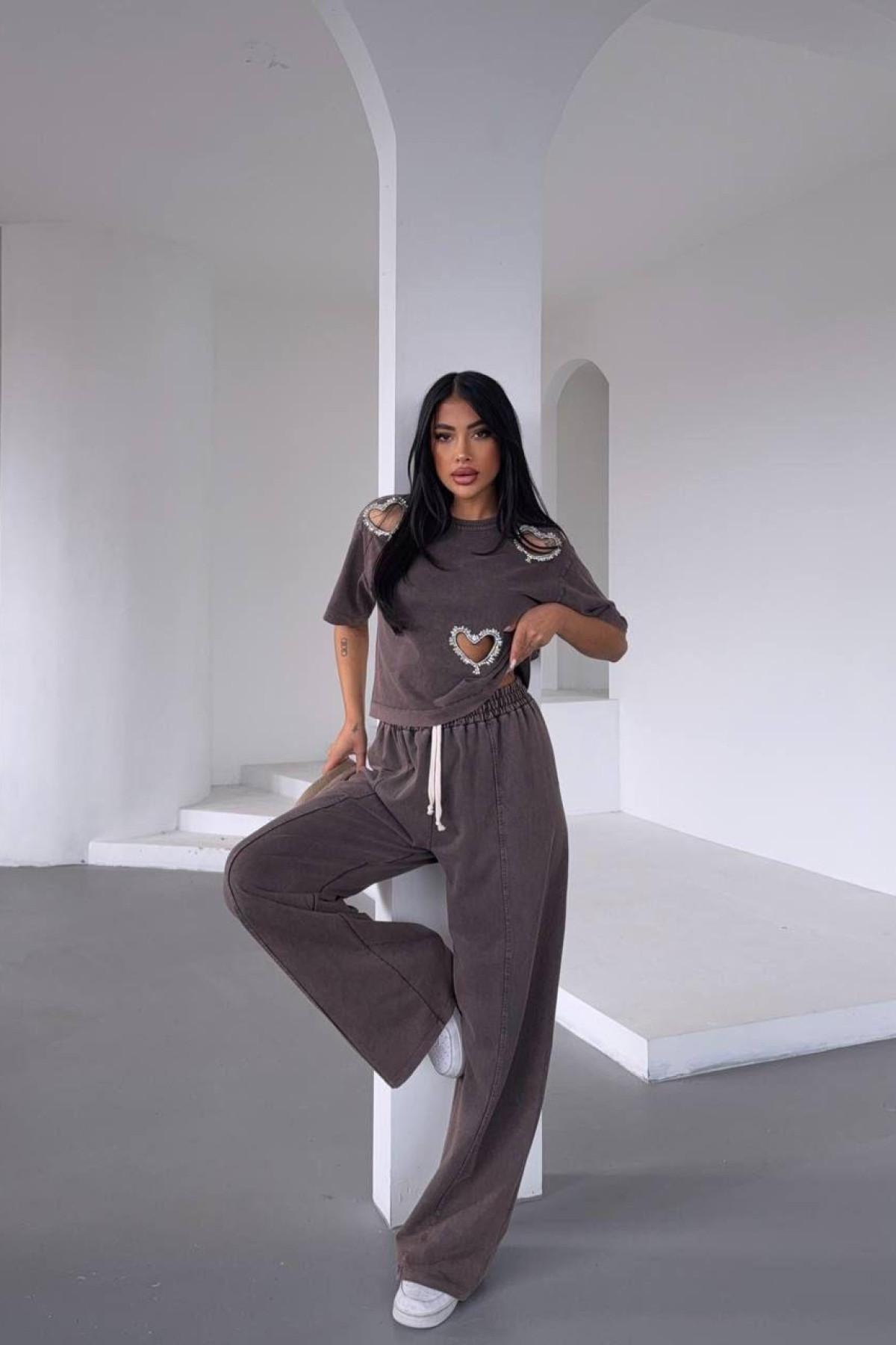 Pencere Detaylı Mürdüm Kadın Alt Üst Takım