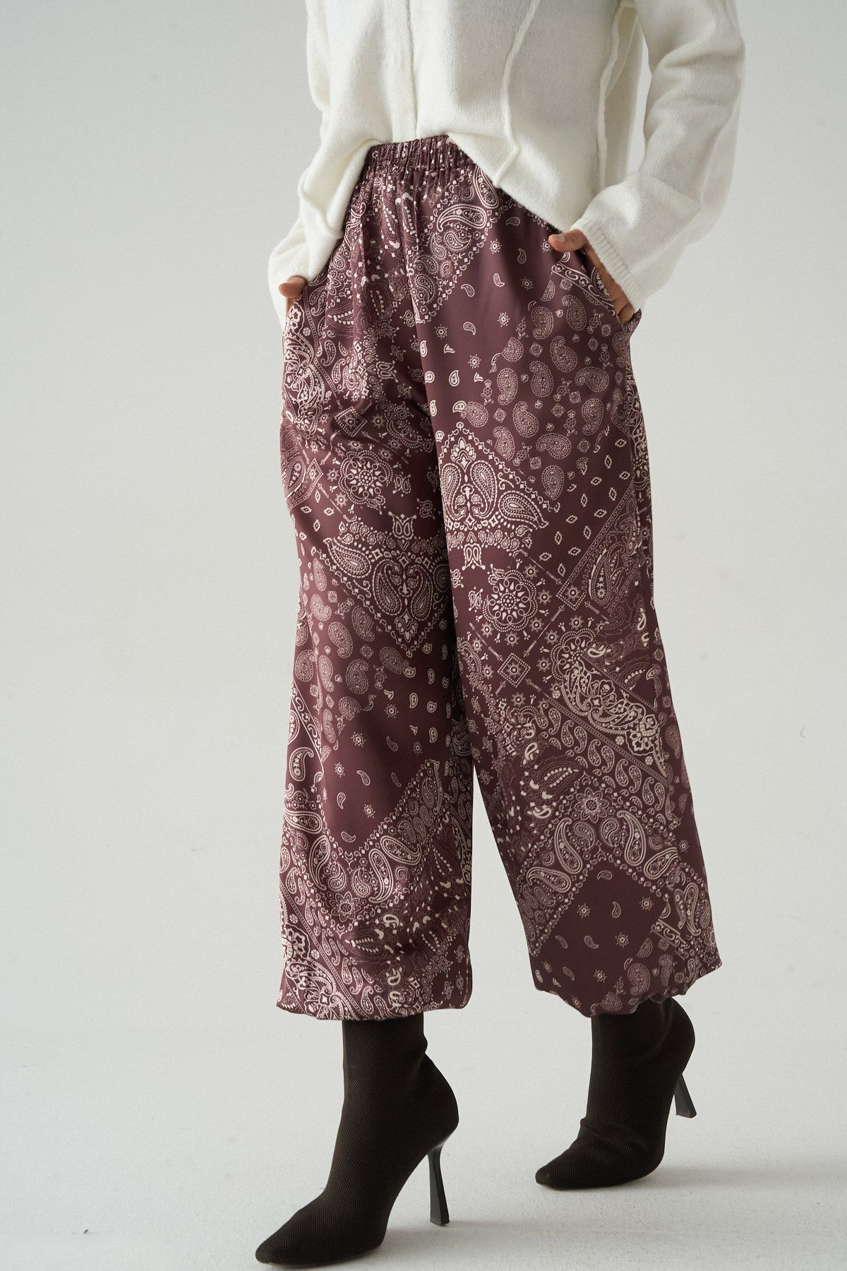 Şal Desenli Kahverengi Kadın Pantolon