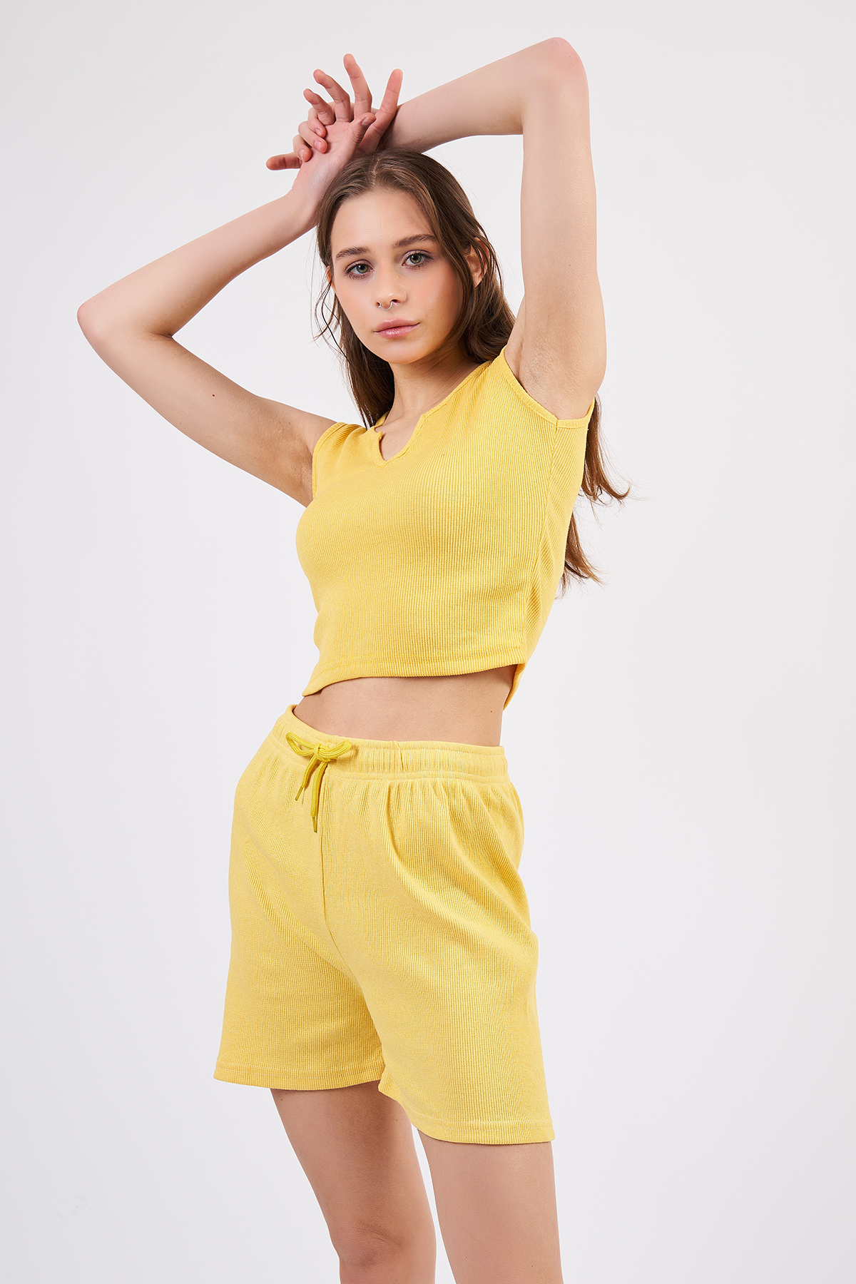 Sarı Atlet Şort Kadın Alt Üst Takım