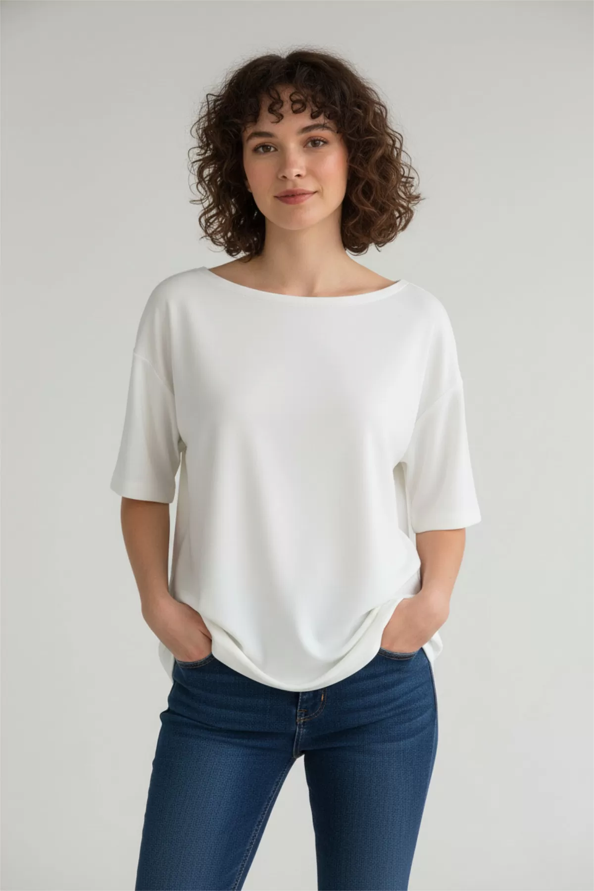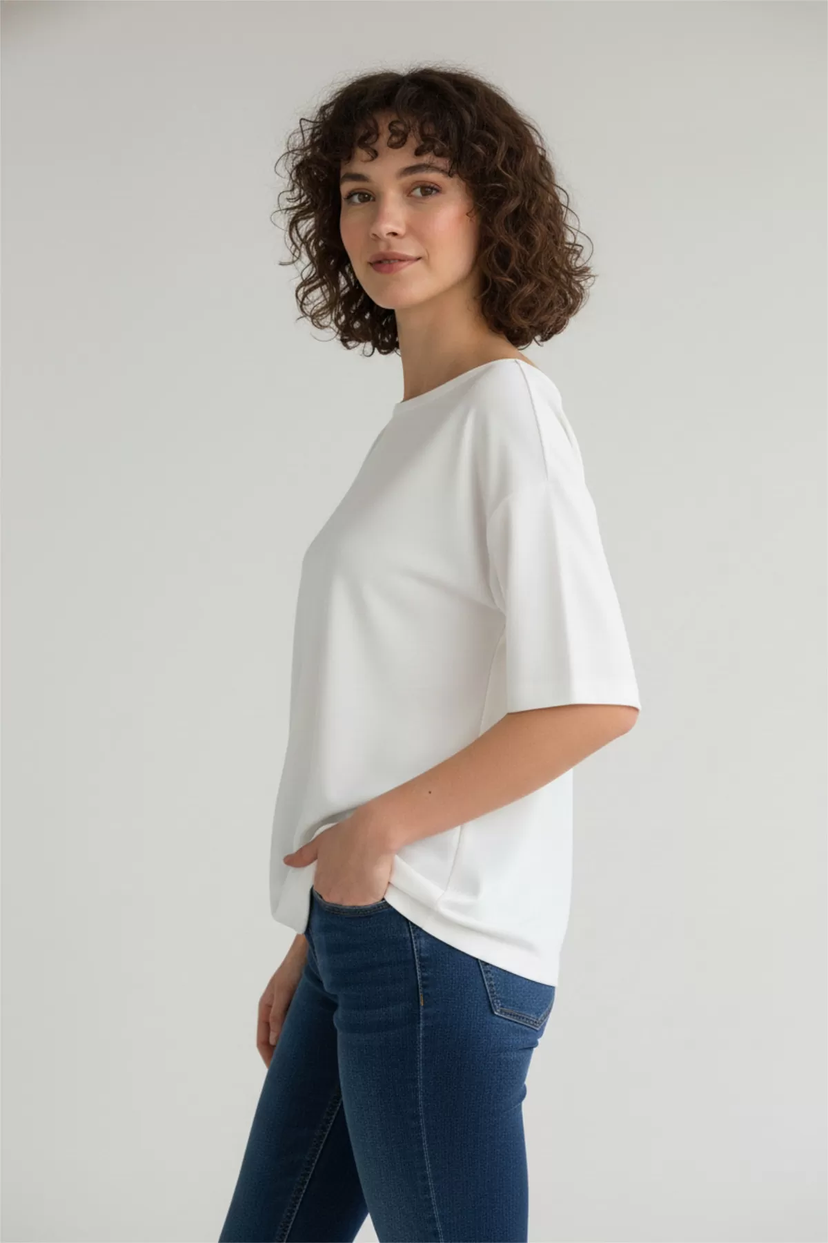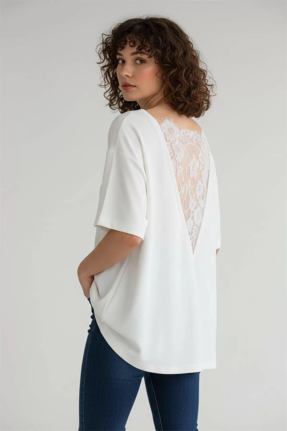 Sırtı Dantel Detaylı Beyaz Oversize Kadın Tişört