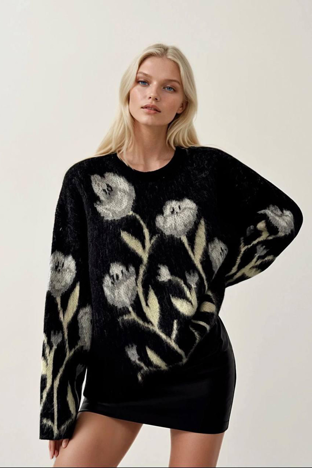 Siyah Beyaz Triko Kadın Kazak