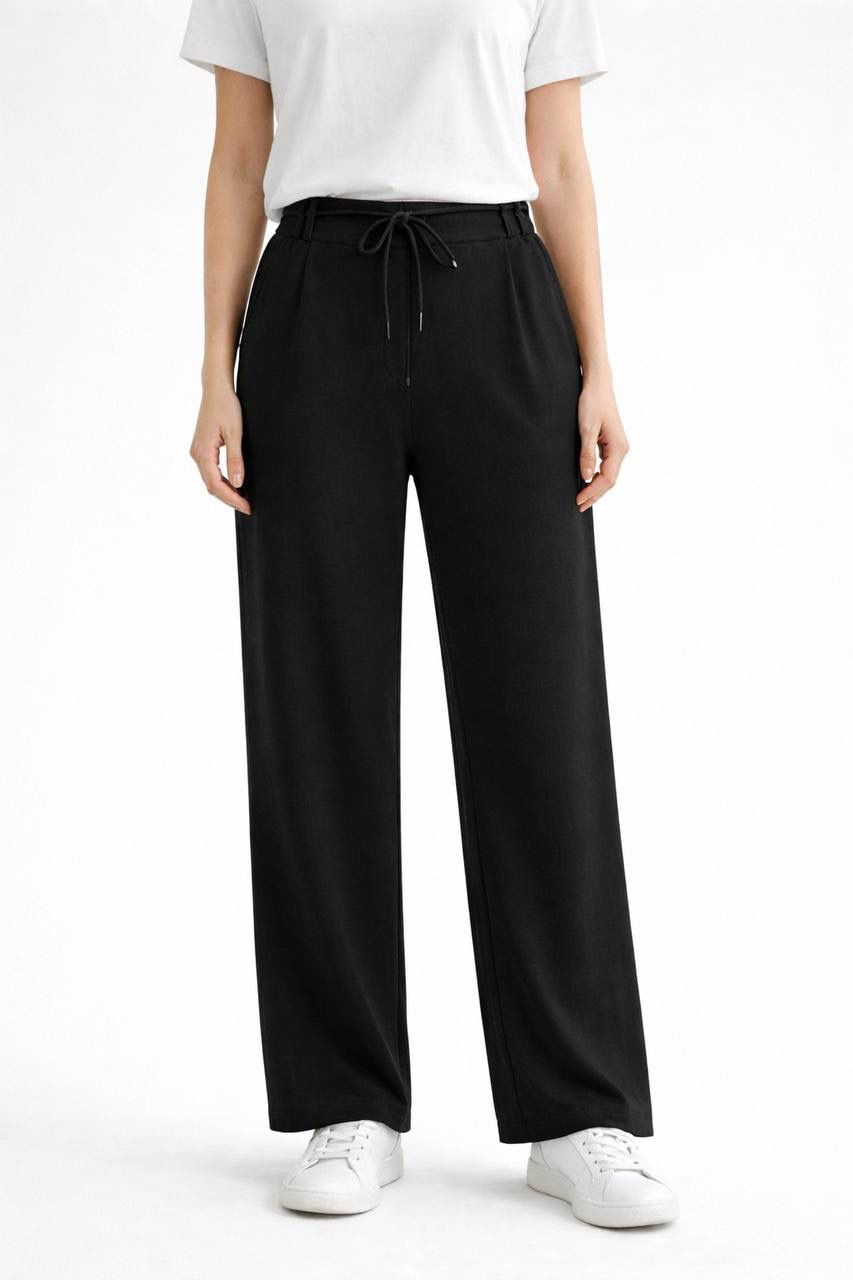 Siyah Full Likralı Modal Kumaş Kadın Palazzo Pantolon