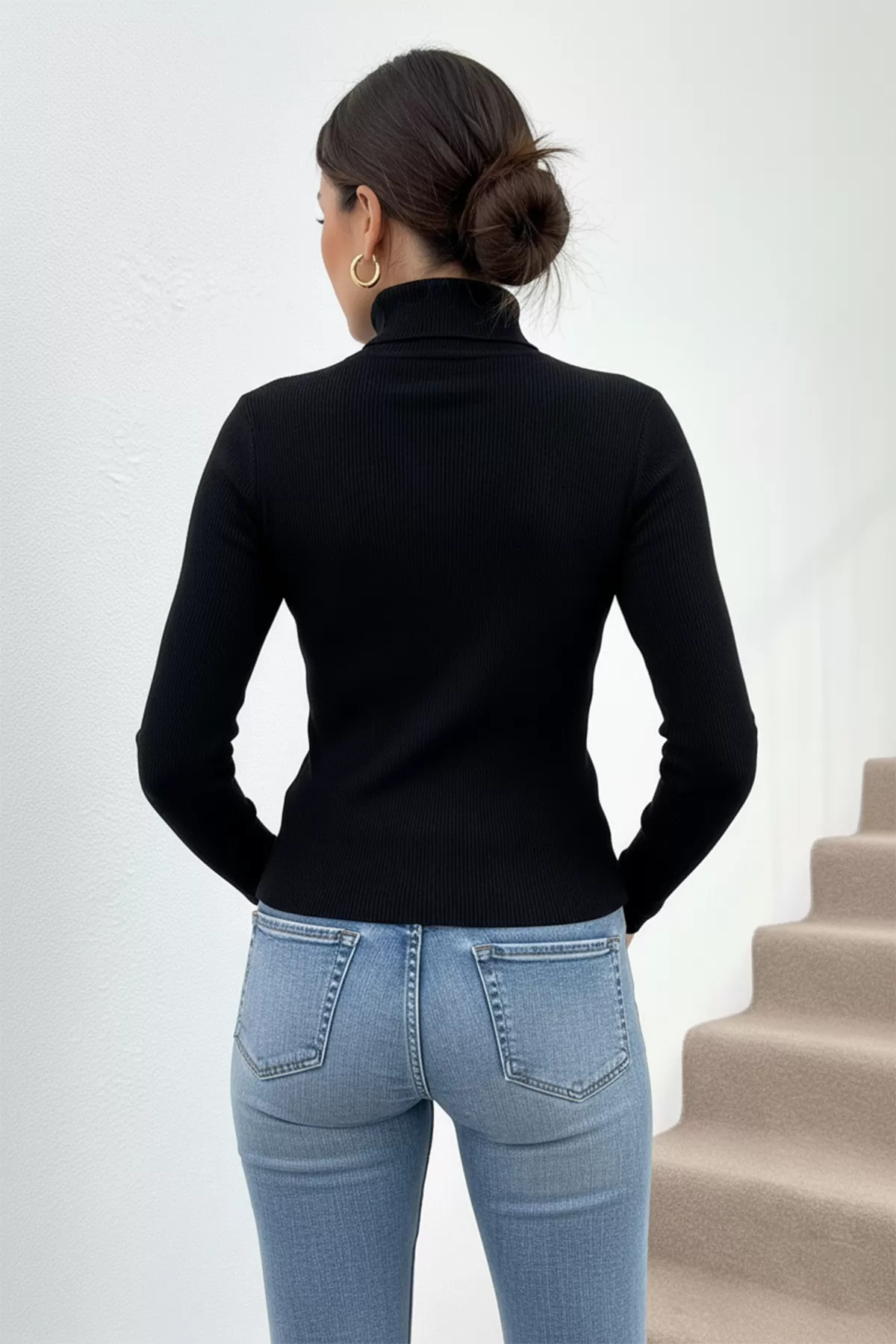 Siyah Kaşkorse Balıkçı Yaka Bluz