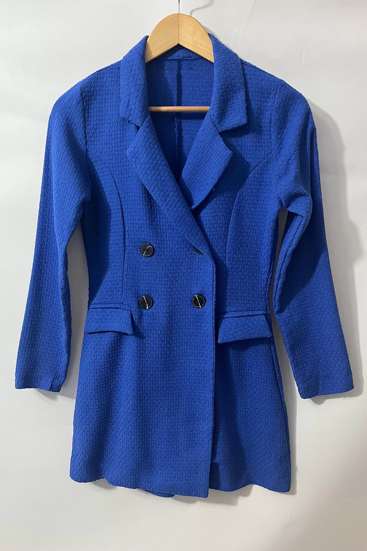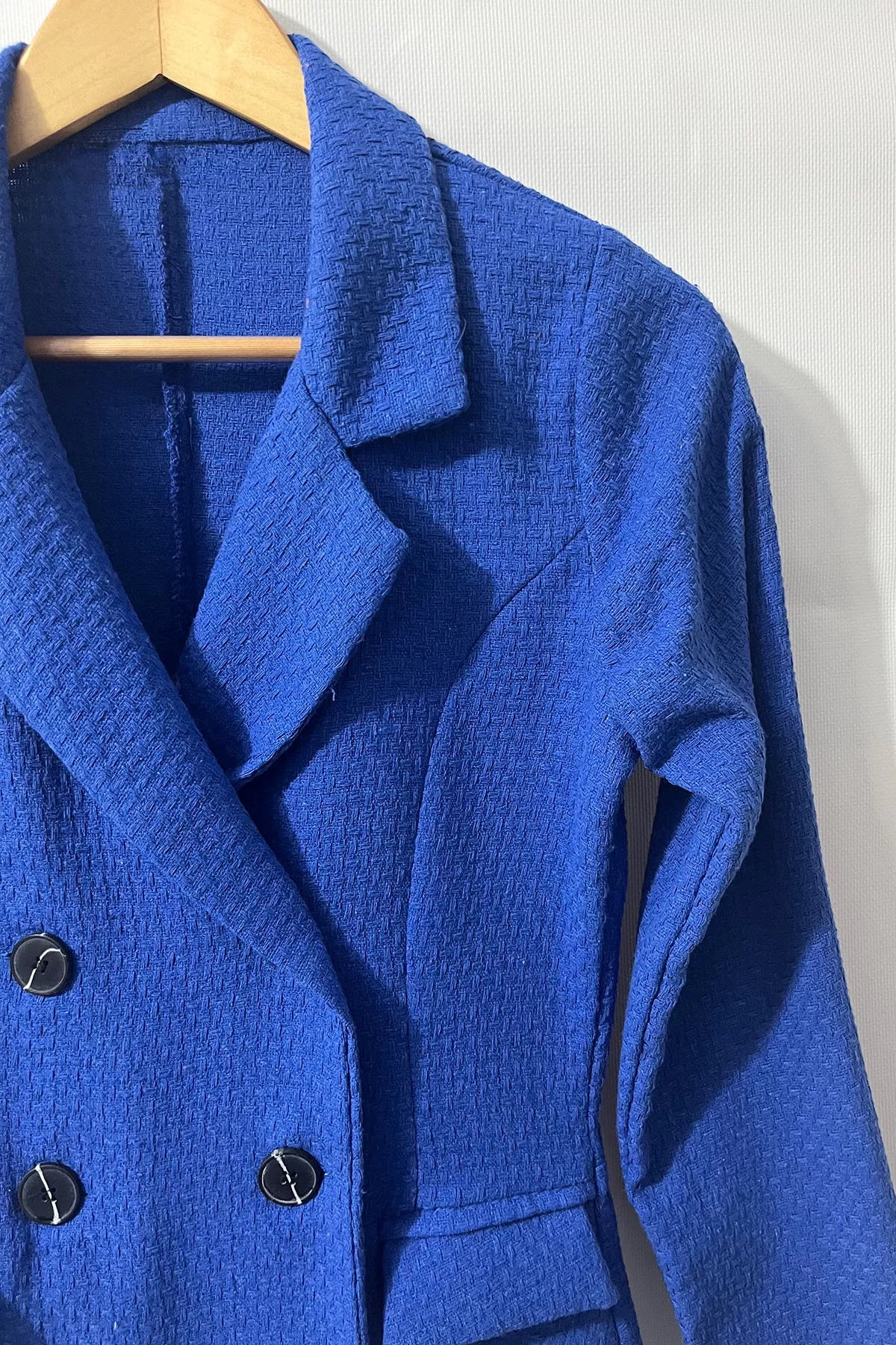 Şortlu Saks Mavi Kruvaze Kadın Ceket