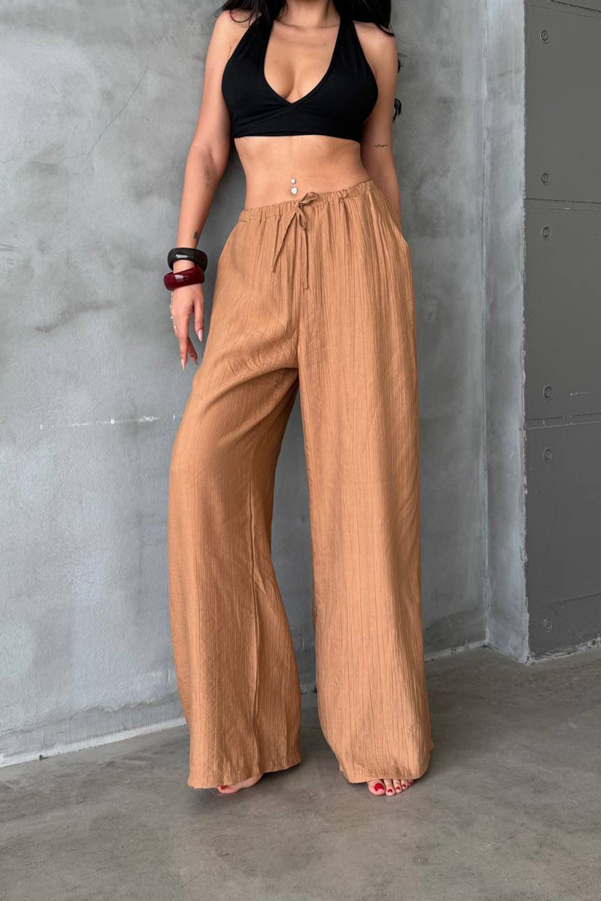 Yüzde yüz pamuklu kumaş Sütlü Kahve Keten Kadın Pantolon