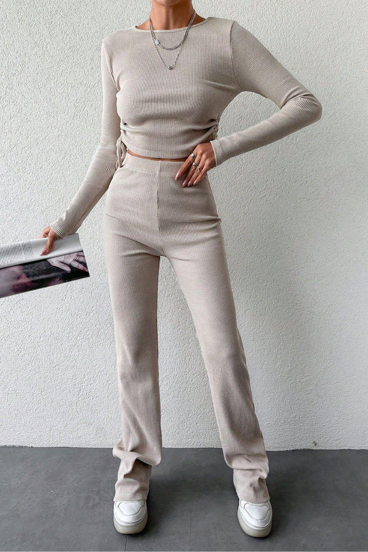 Facebook Pixel Taş Rengi Bisiklet Yaka Bluz Pantolon Kadın Alt Üst Takım, Fiyatı 229.22 TL | Nare Giyim