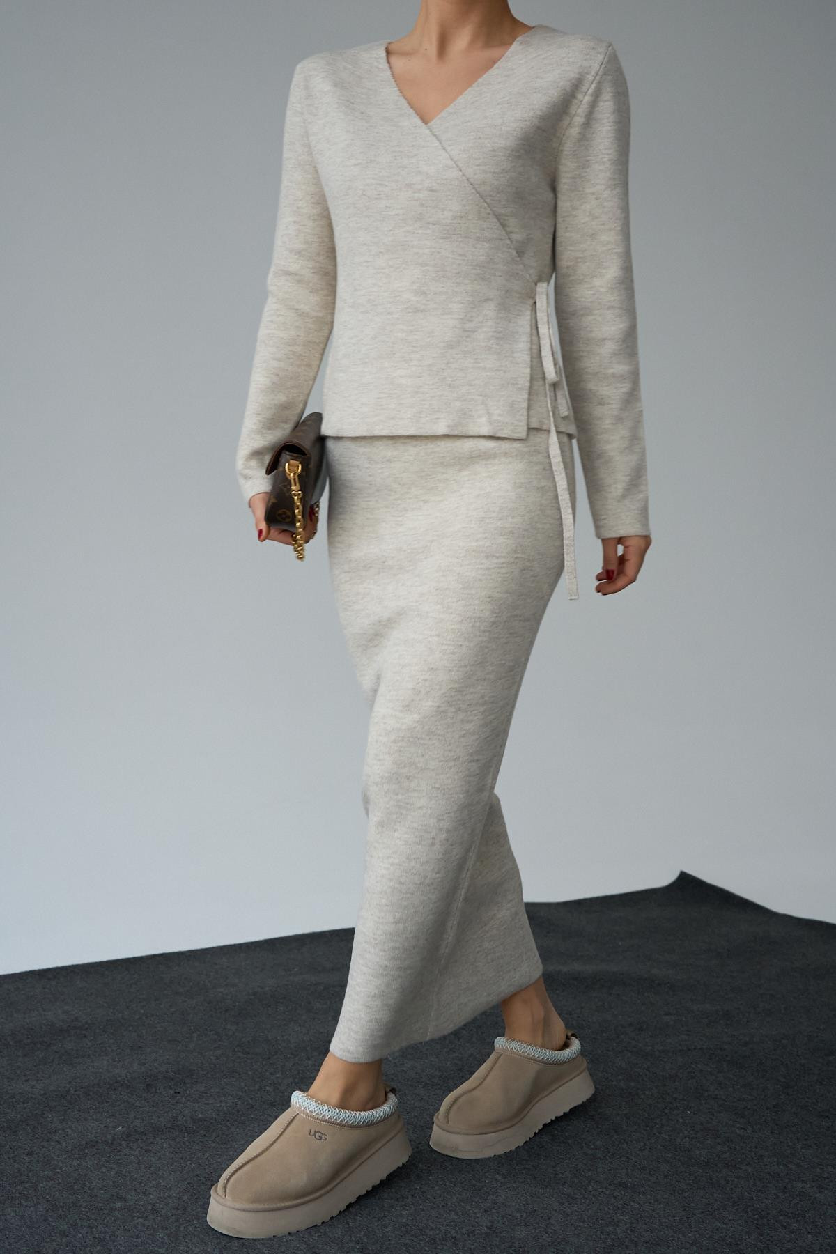 Taş Rengi Kruvaze Yandan Bağlamalı Etekli Takım