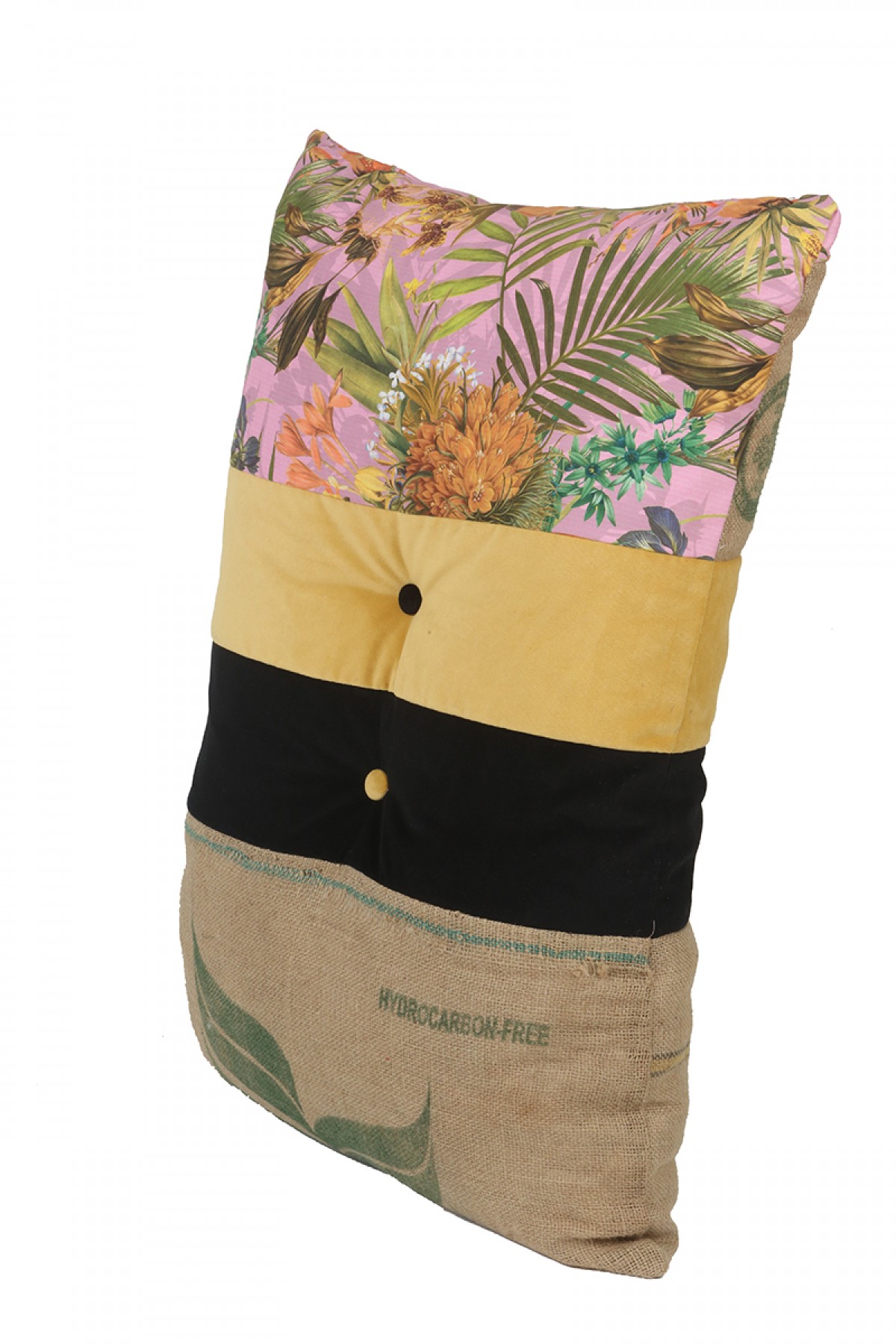 Baskılı dog kumaş, kadife ve çuval kullanılmıştır