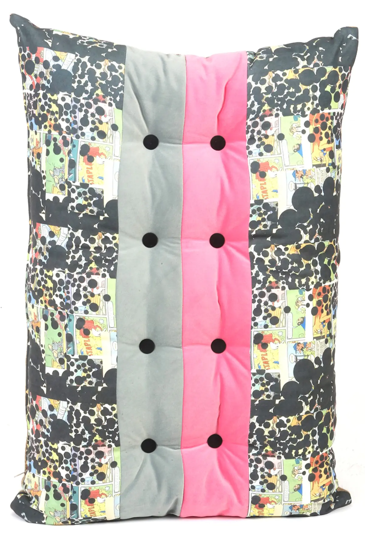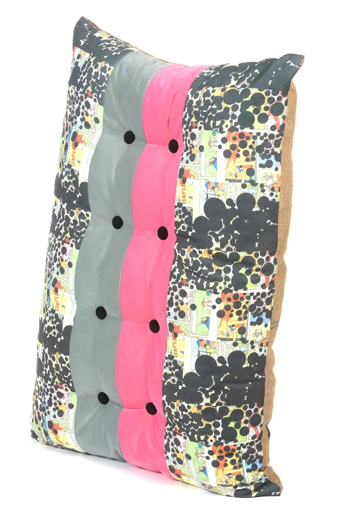 Baskılı dog kumaş, kadife ve çuvalkullanılmıştır