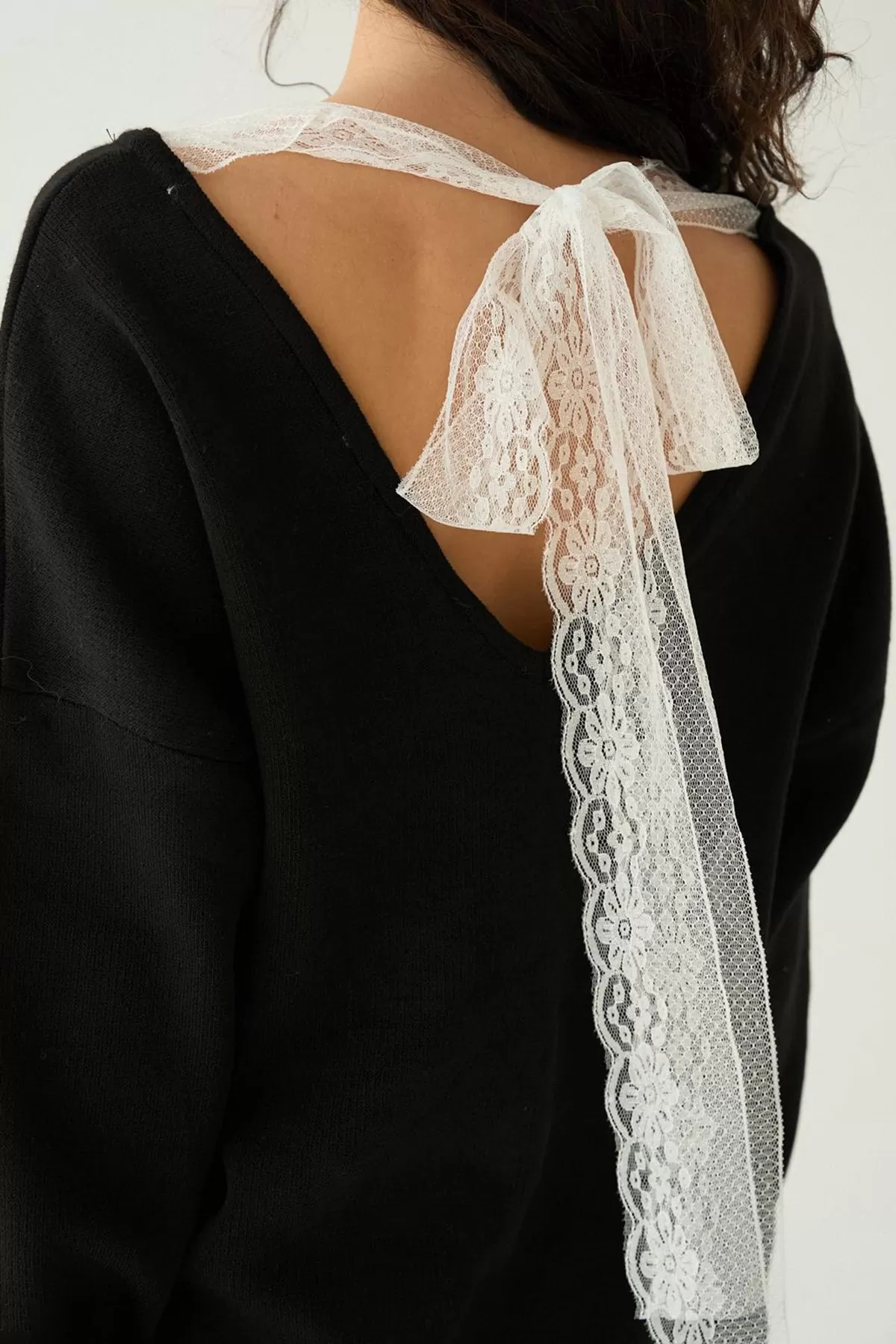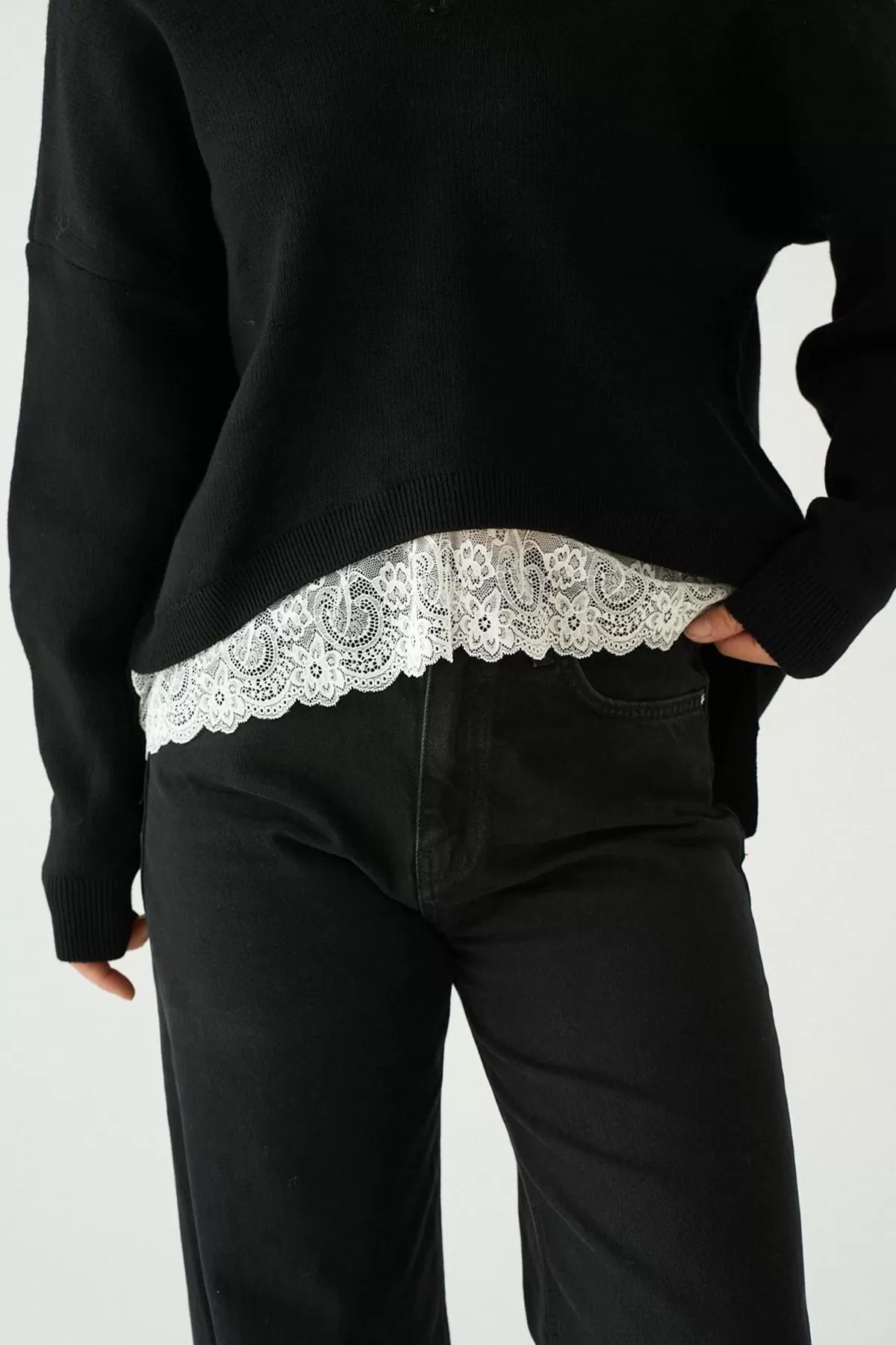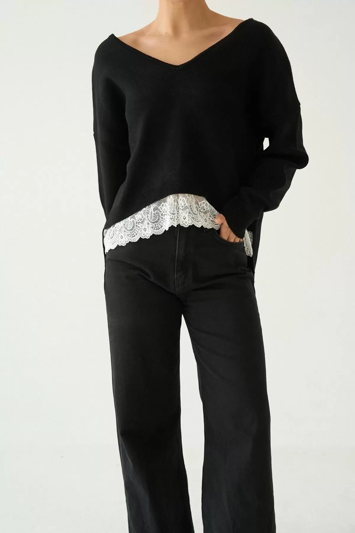 V Yaka Dantel Detaylı Siyah Triko Kadın Kazak V Yaka Dantel Detaylı Siyah Triko Kadın Kazak V Yaka Dantel Detaylı Siyah Triko Kadın Kazak