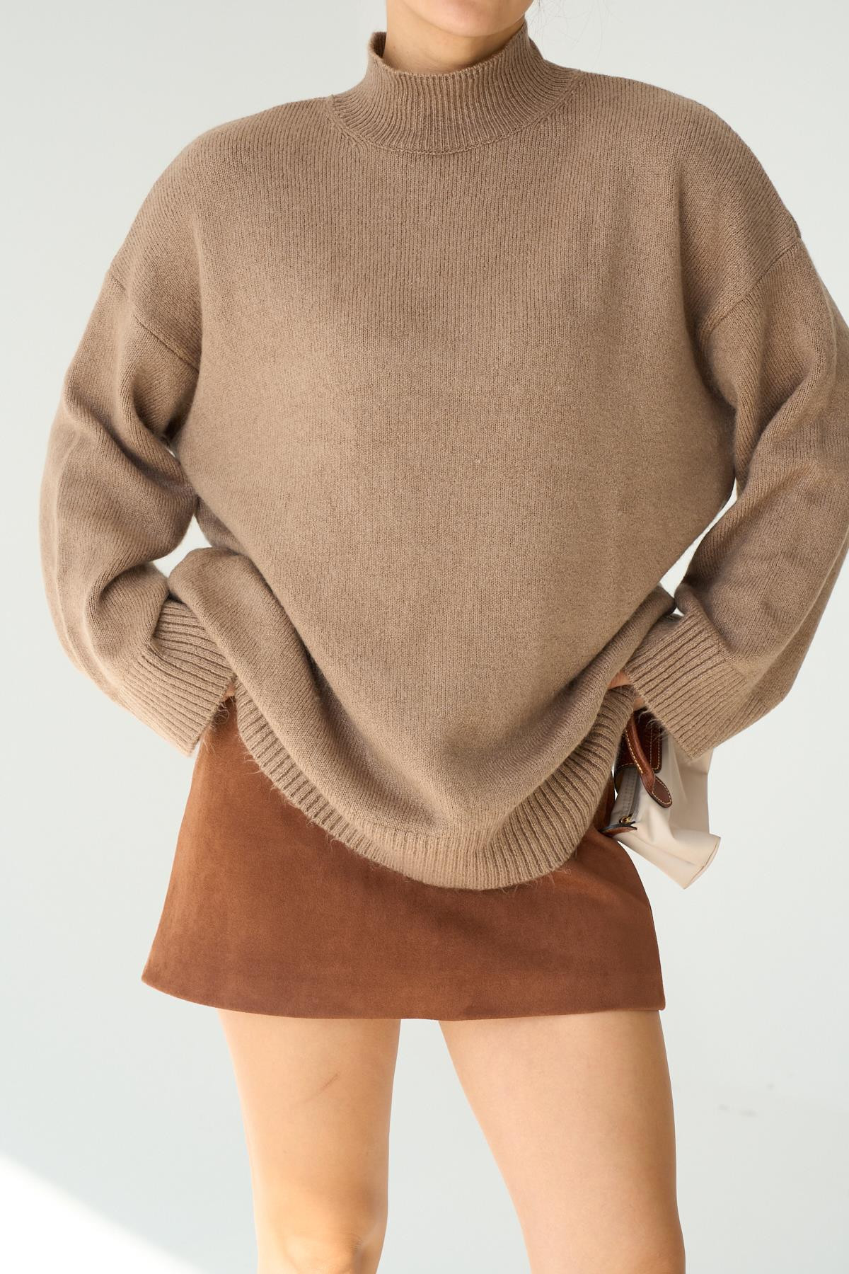 Yarım Balıkçı Yaka Bej Uzun Kadın Kazak