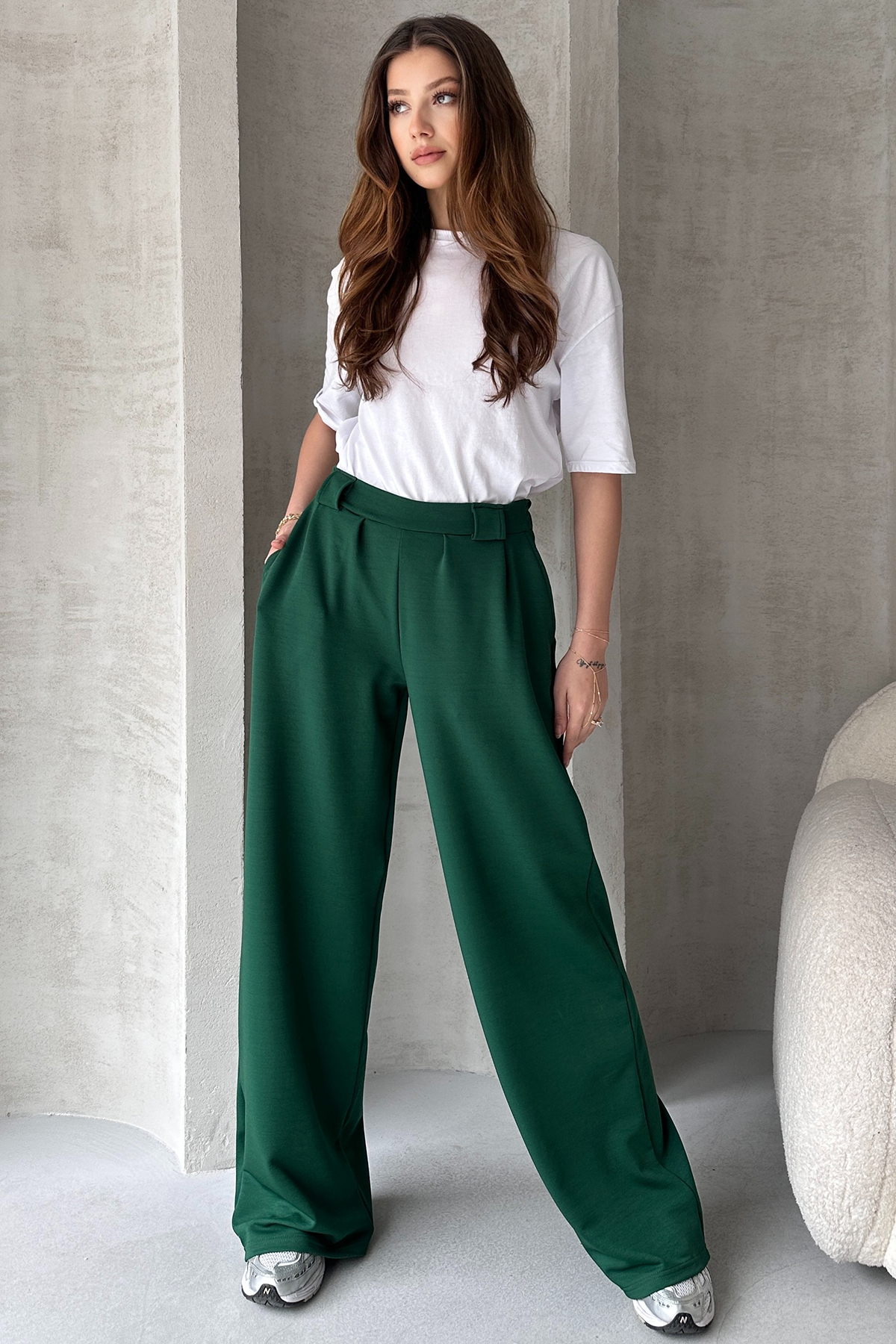 Facebook Pixel Yeşil Krep Kumaş Salaş Kesim Kadın Pantolon, Fiyatı 328.97 TL | Nare Giyim