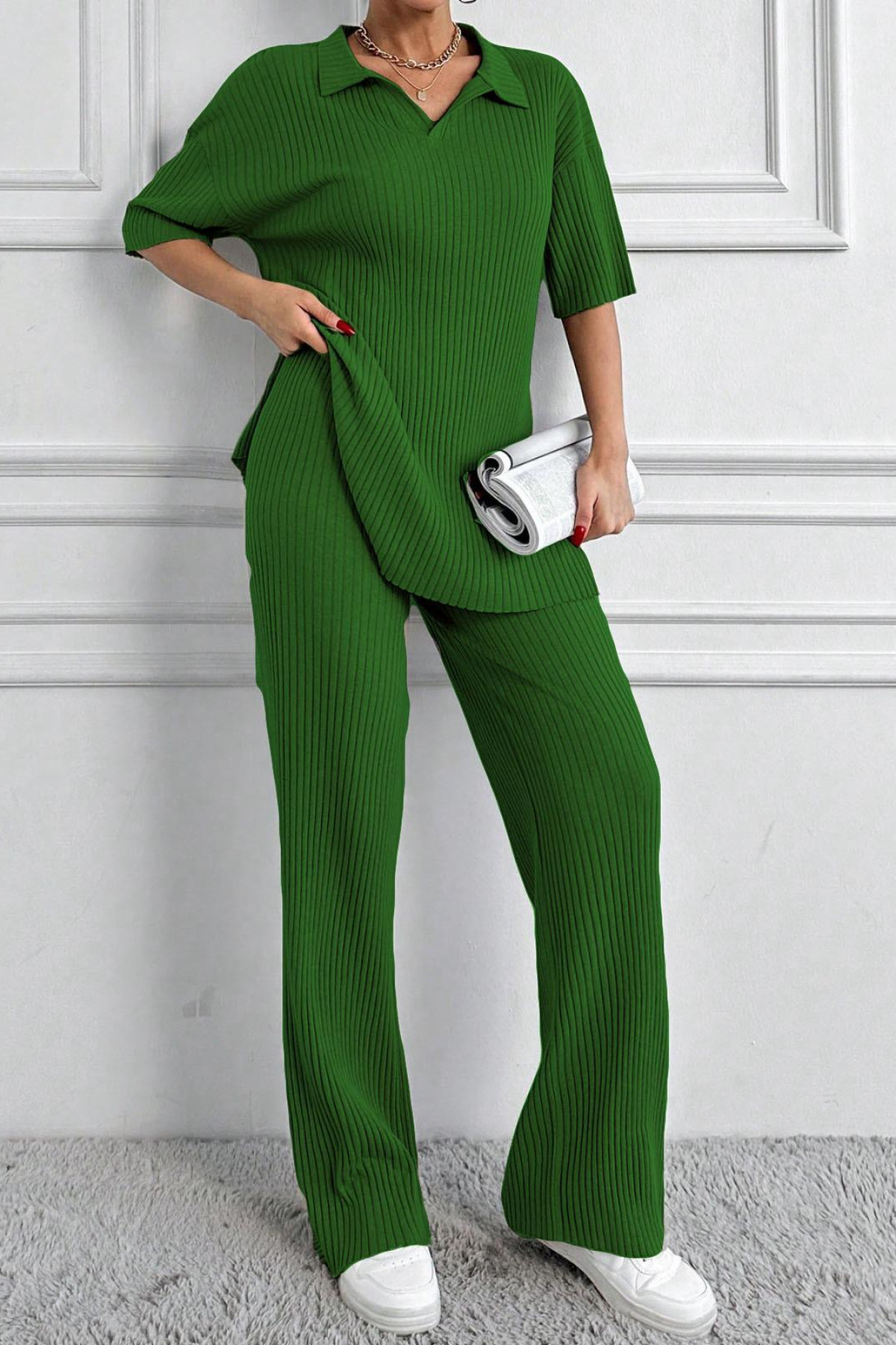 Facebook Pixel Polo Yaka Kısa Kollu Yeşil Kadın Alt Üst Takım, Fiyatı 288.72 TL | Nare Giyim