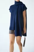 Şal Aksesuarlı Lacivert Triko Tunik